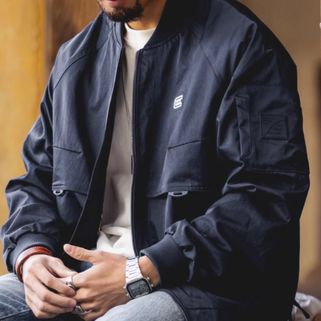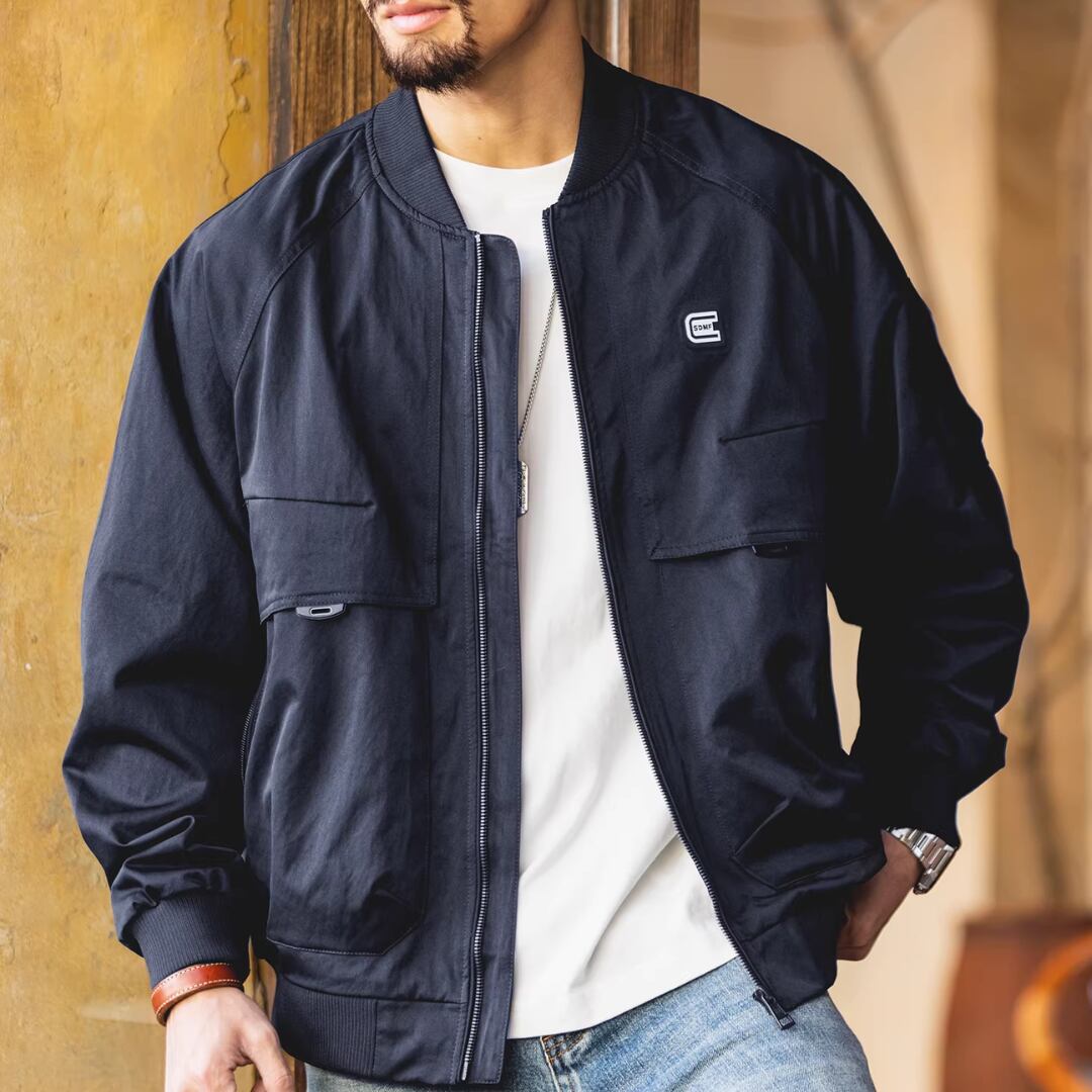 American-style black casual bomber jacket(VE006)